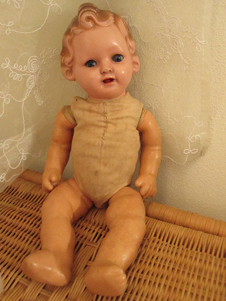 Het popje, met één been en losse oogjes, komt uit de collectie van Efka.